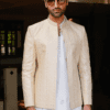 Emerald Green Self-Embroidered Prince Coat – A Regal Blend of Tradition & Sophistication